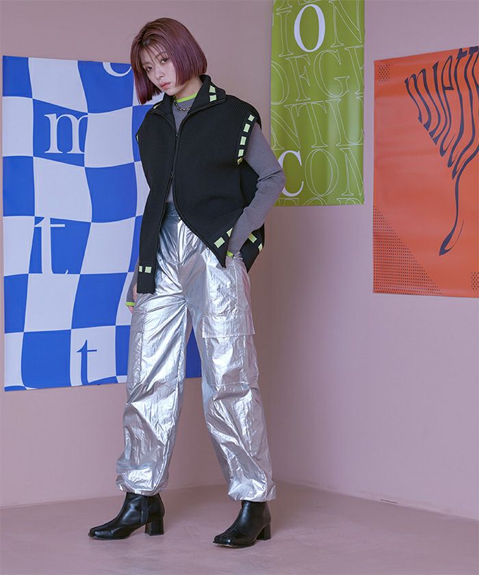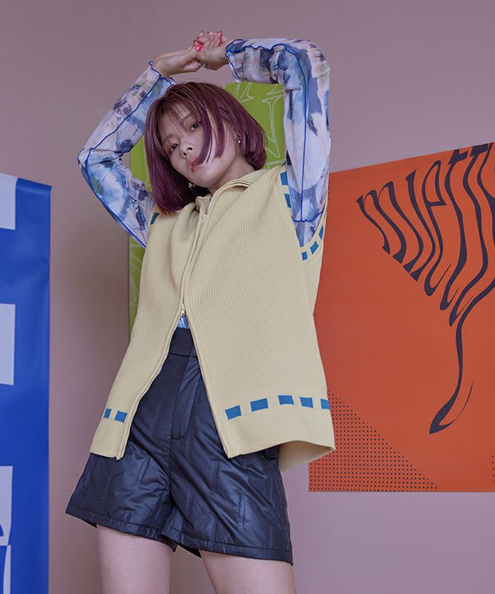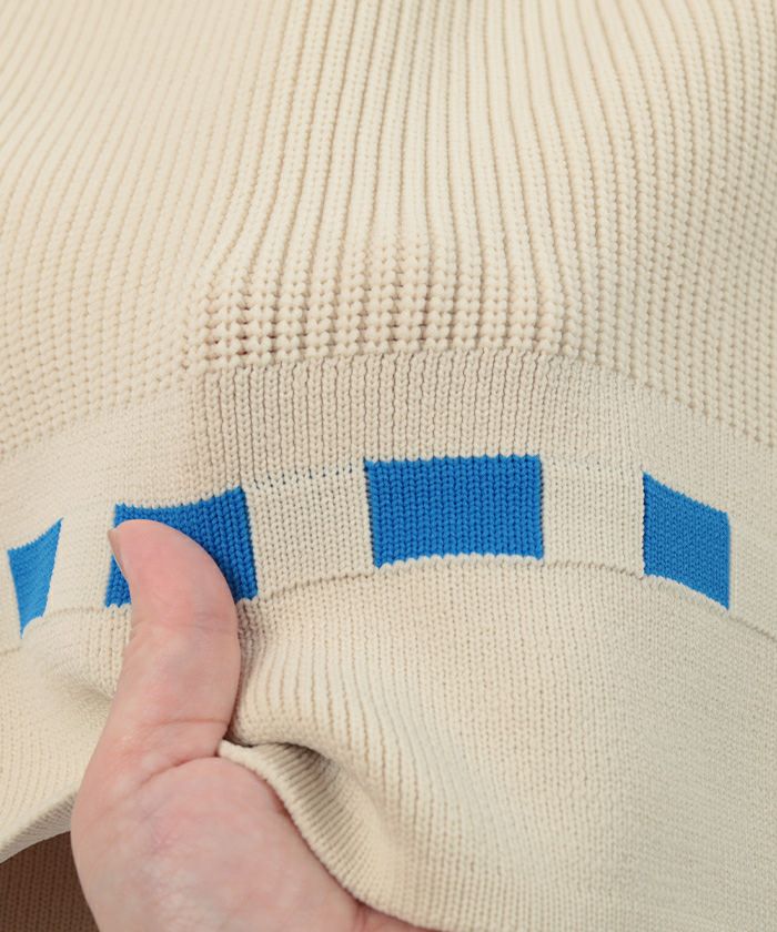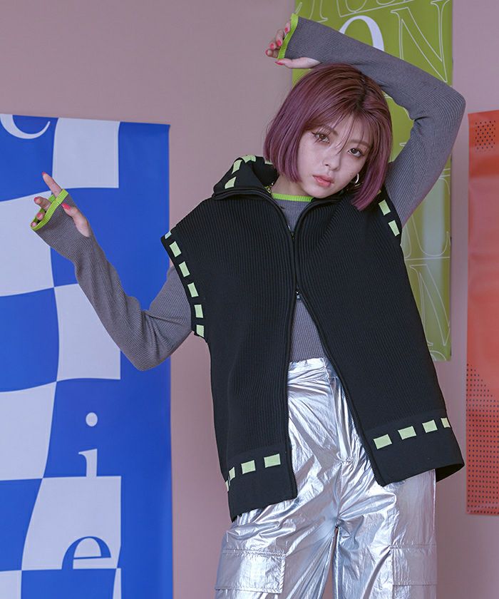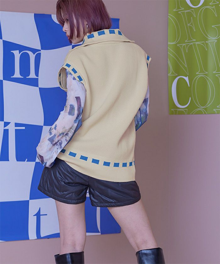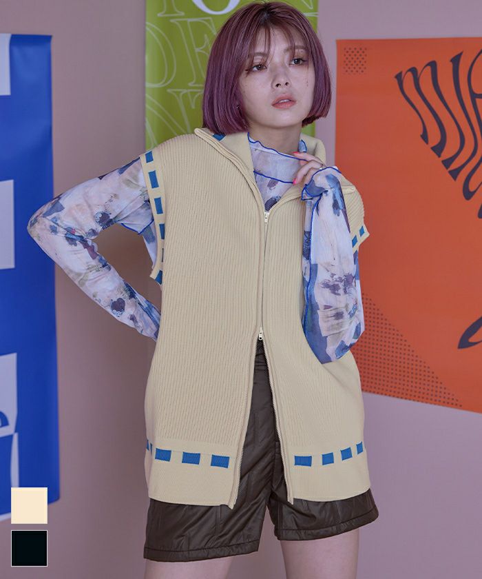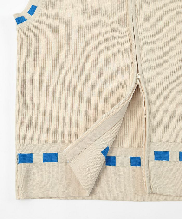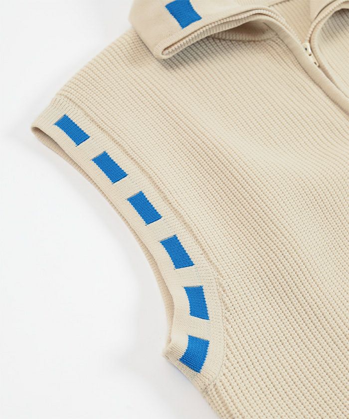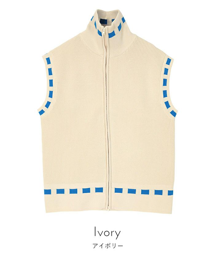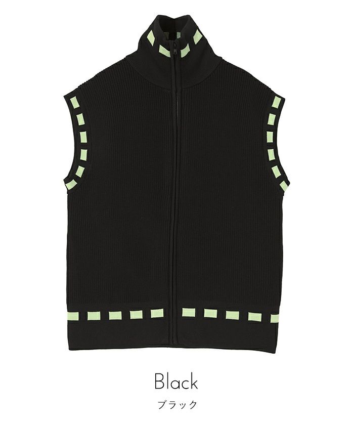 ・ステッチ風の柄の入った編み地がポイントのハイネックベスト。