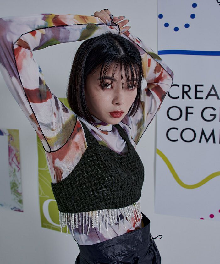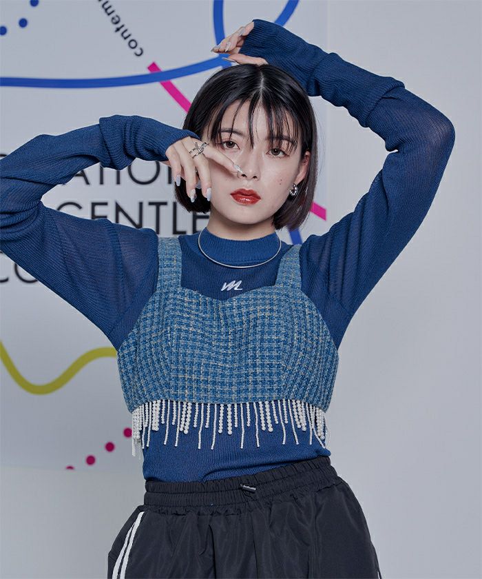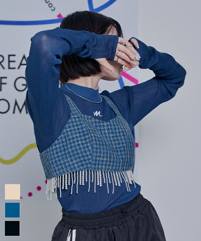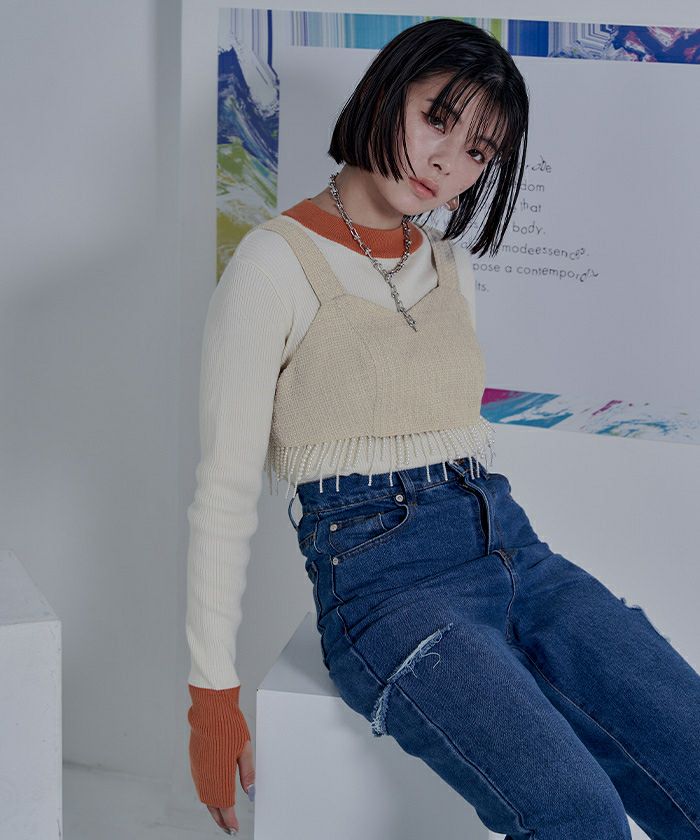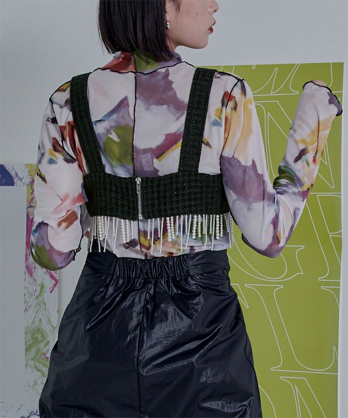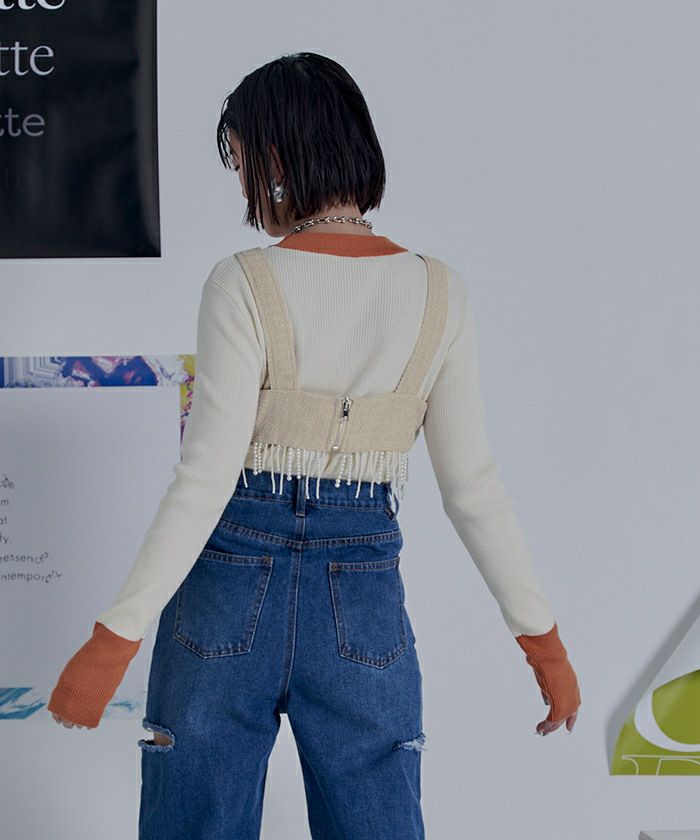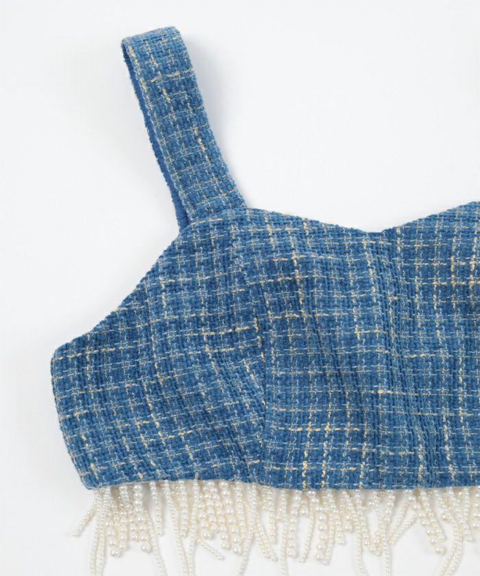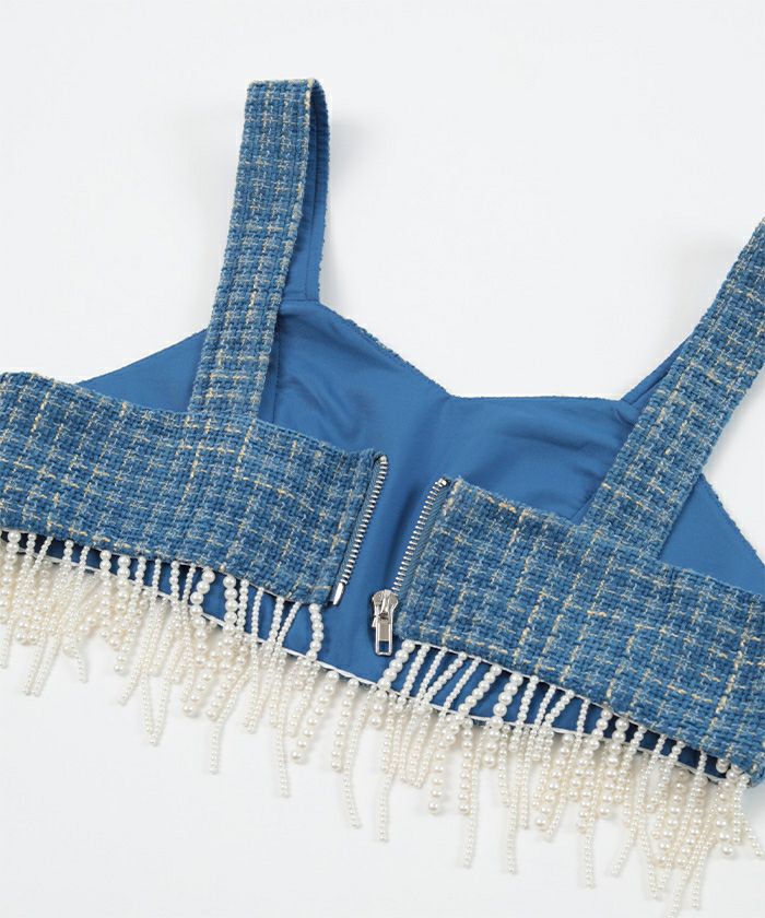 ・パールのフリンジデザインがポイントのビスチェ。