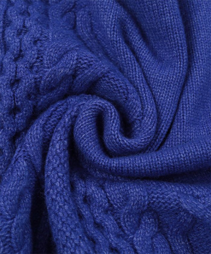 ・表面感のあるケーブル編みと天竺編みのアシンメトリーデザイン。