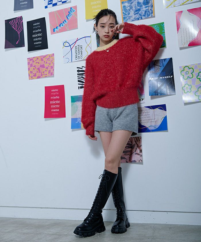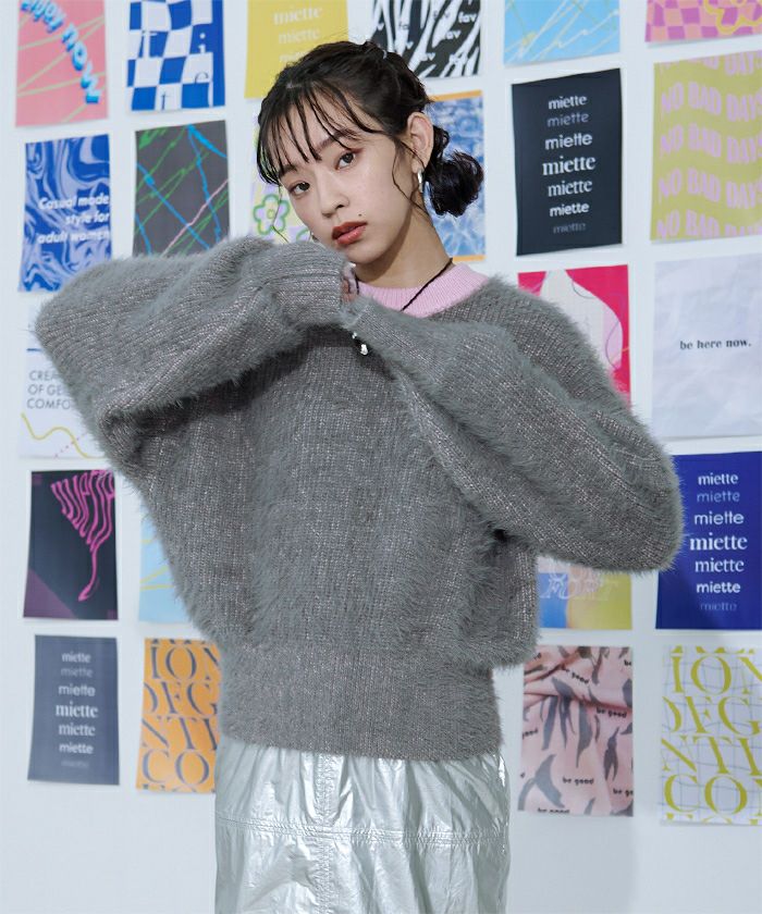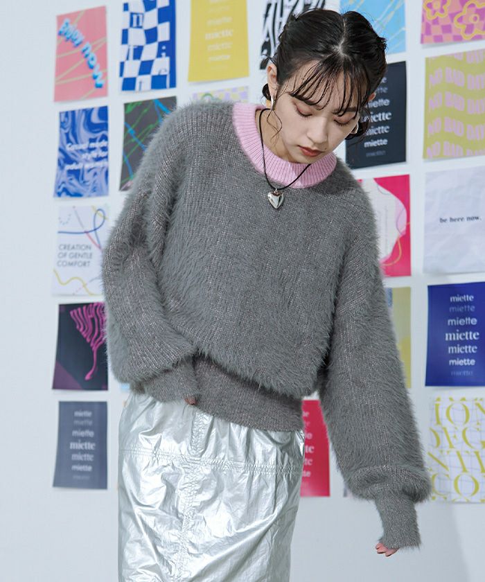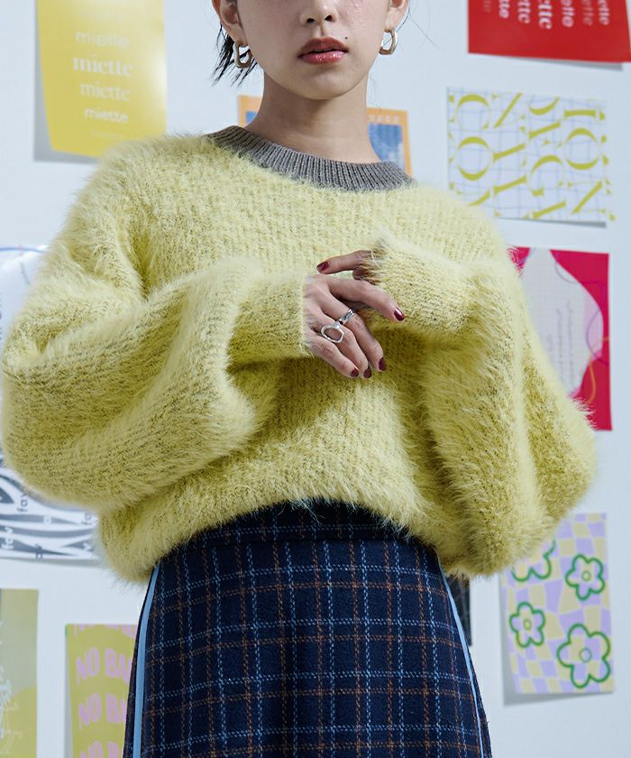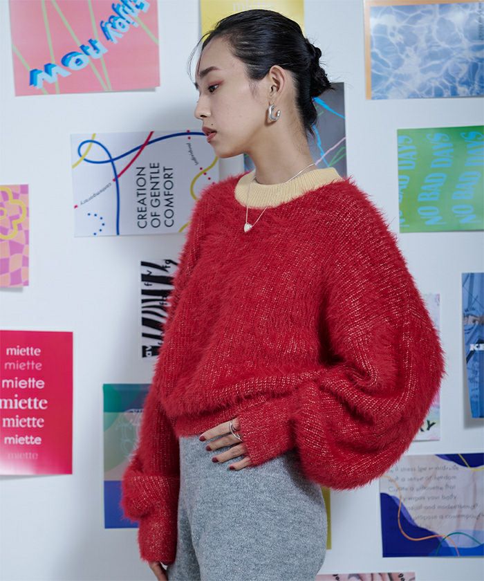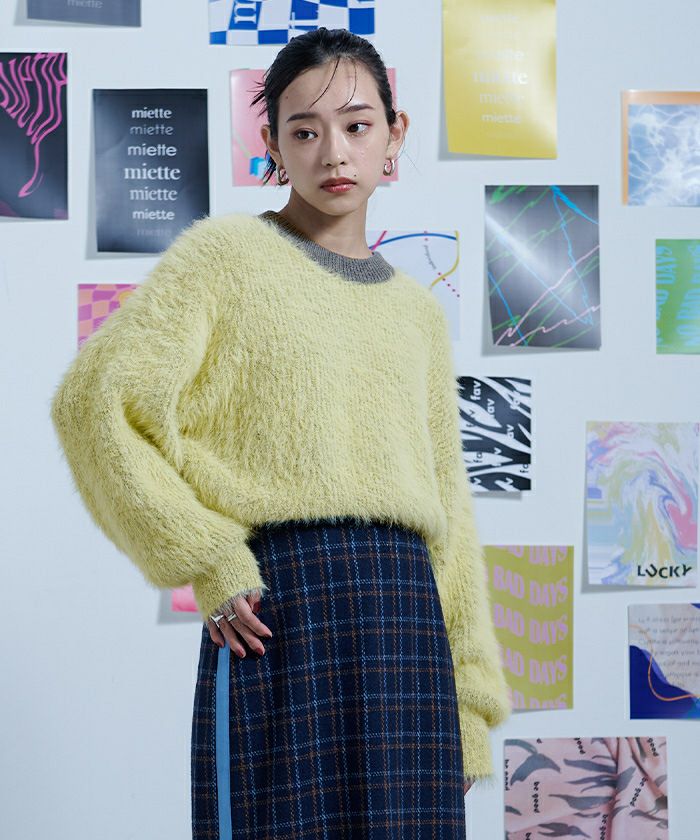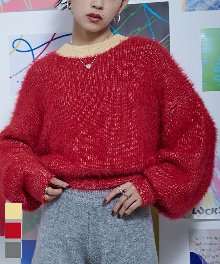 ・シンプルながらにおしゃれにきまるミックスシャギーニット。