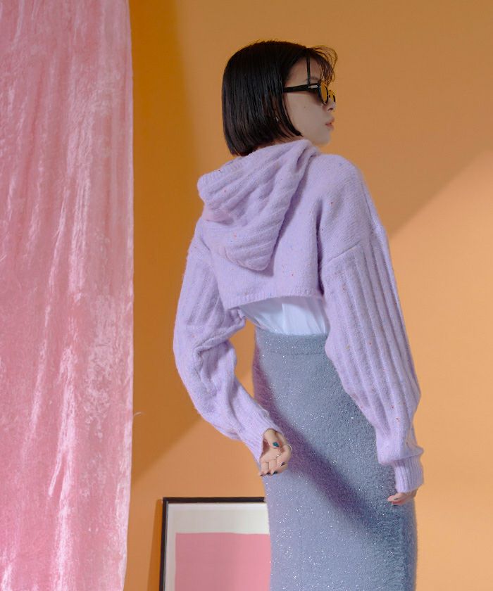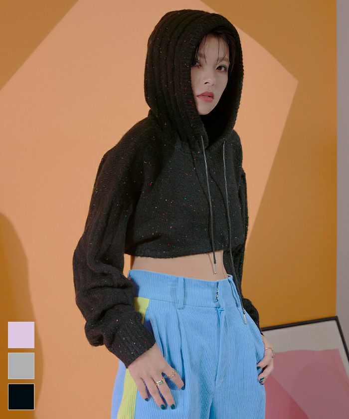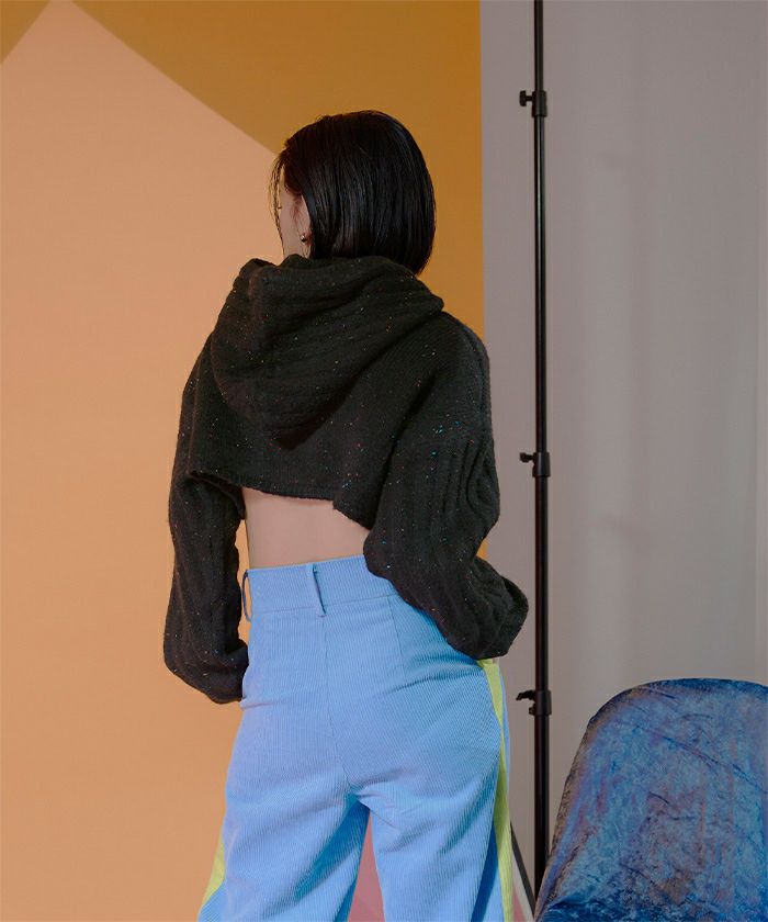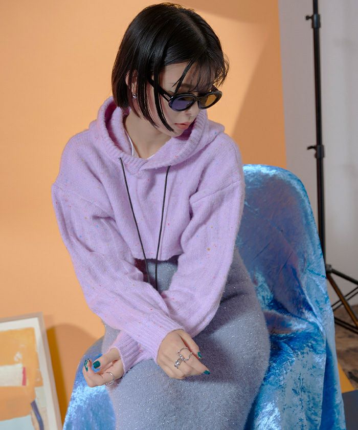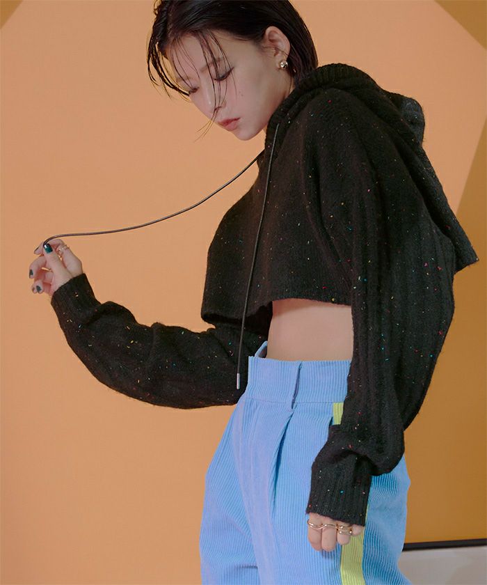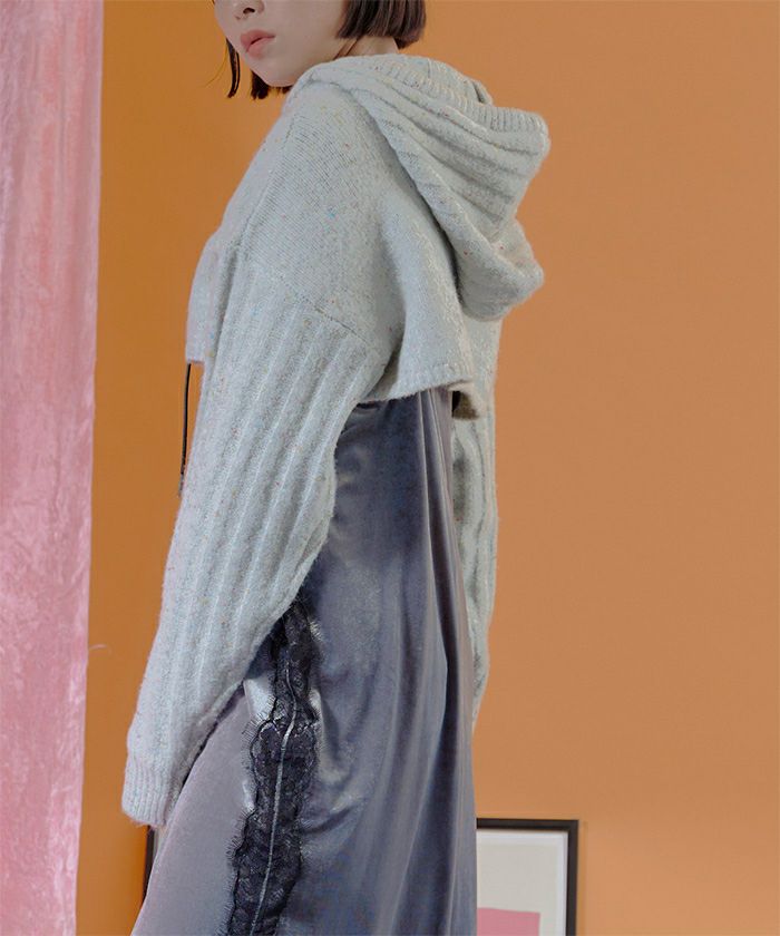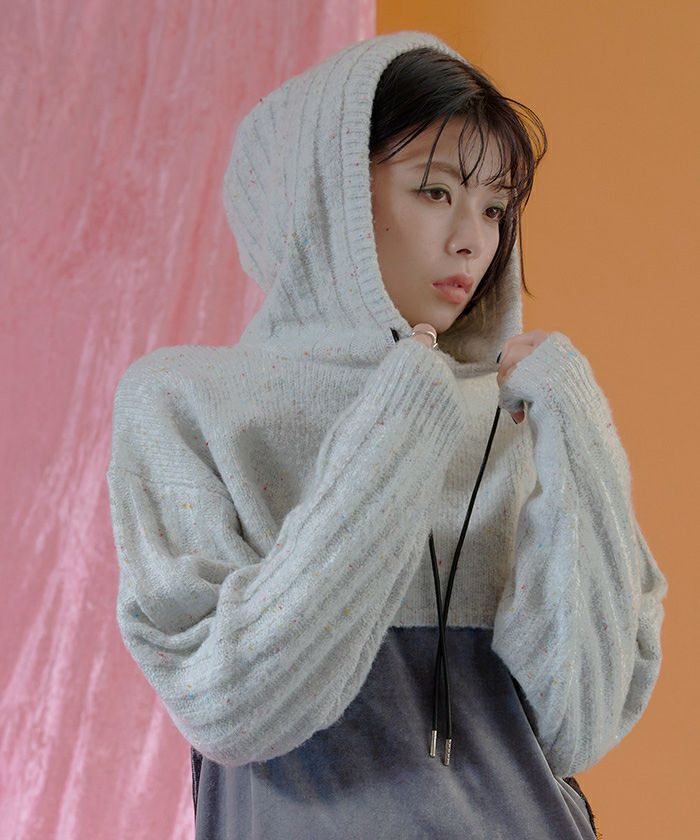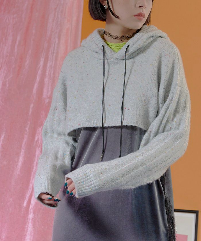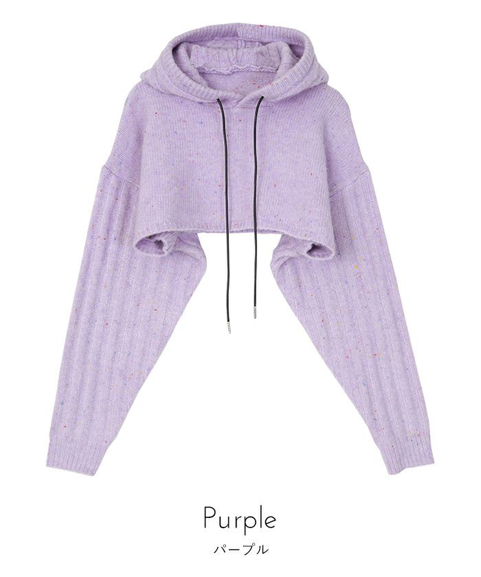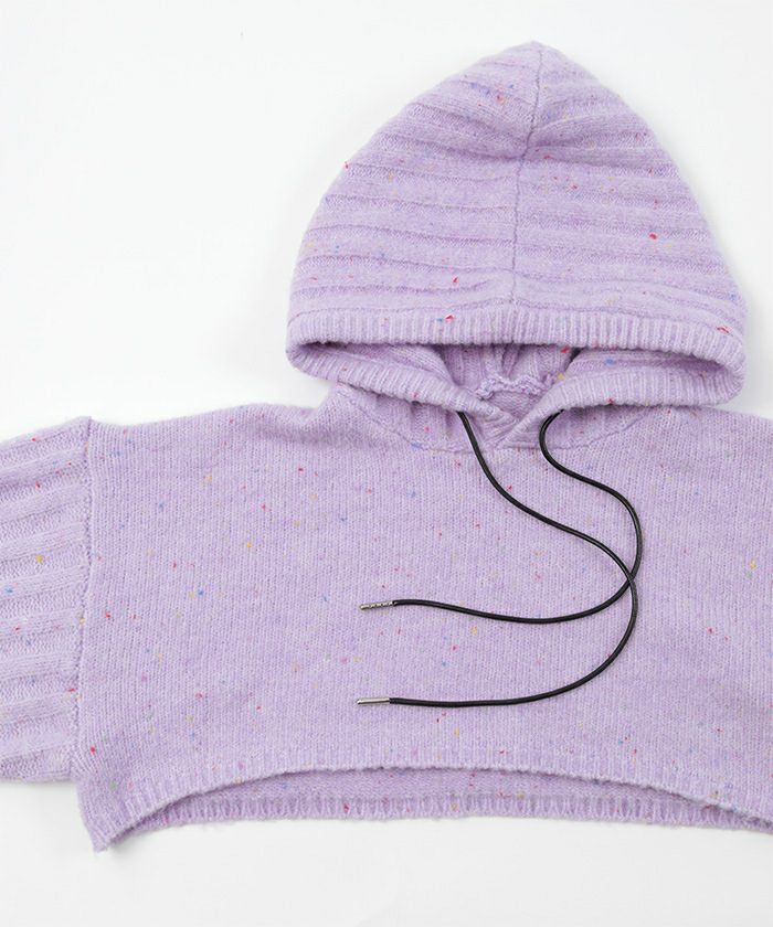 商品情報 ・カラフルなネップが入った糸を使用したニットパーカー。