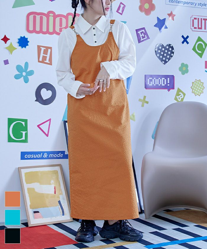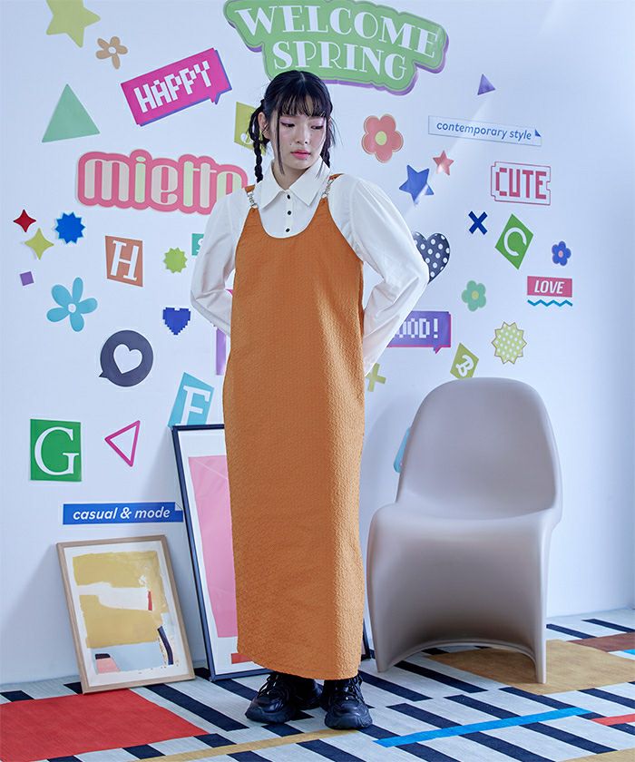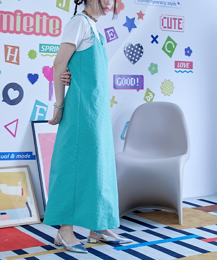 ・ハリのあるふくれジャガード素材が魅力のワンピース。