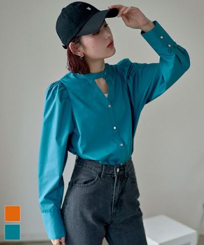 ギャザースリーブバンドカラーブラウス〔メール便可/80〕