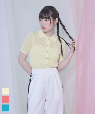 ビジューボタンシアーポロニット〔メール便可/60〕