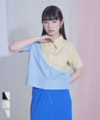 カーブラインバイカラー半袖シャツ〔メール便可/80〕