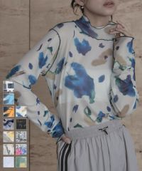 配色メロープリントチュールシアートップス〔メール便可/30〕